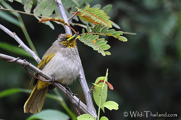 Yellow-vented Bulbuls breed in Thailand throughout the year, with peak breeding likely occurring between February and June. They build a loose, cup-shaped nest in a variety of locations, from low bushes to high trees, or even in man-made structures like potted plants or near buildings.