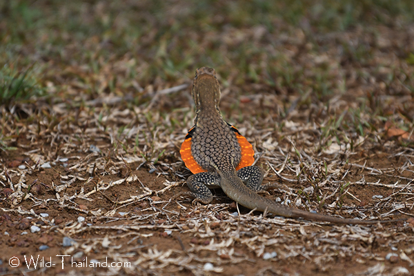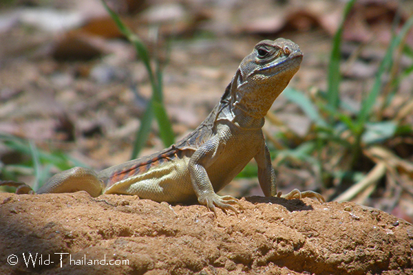 Eastern Butterfly Lizards are often found in colonies. They are strictly monogamous, with a single adult pair sharing a burrow. When threatened they will run at speed to their burrow.