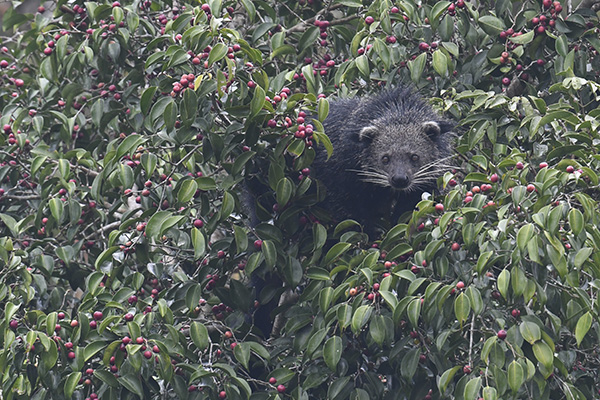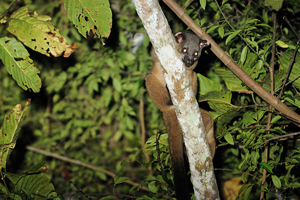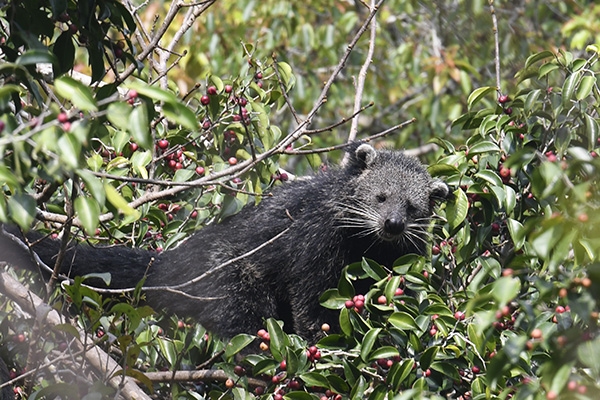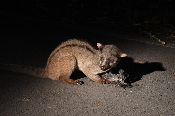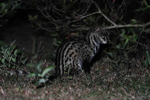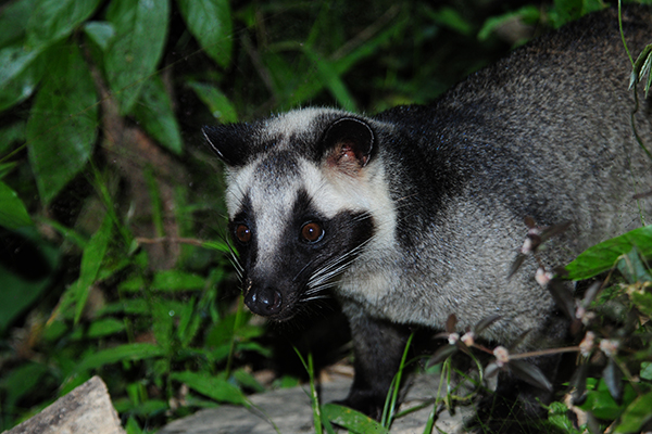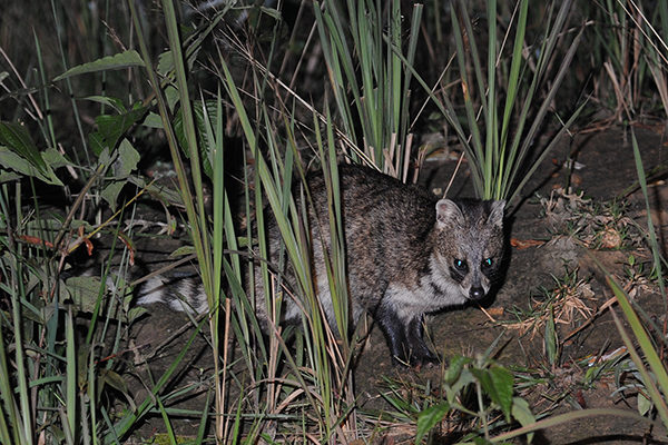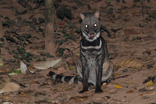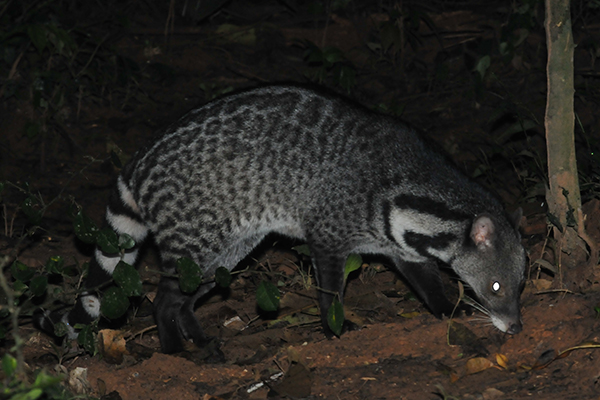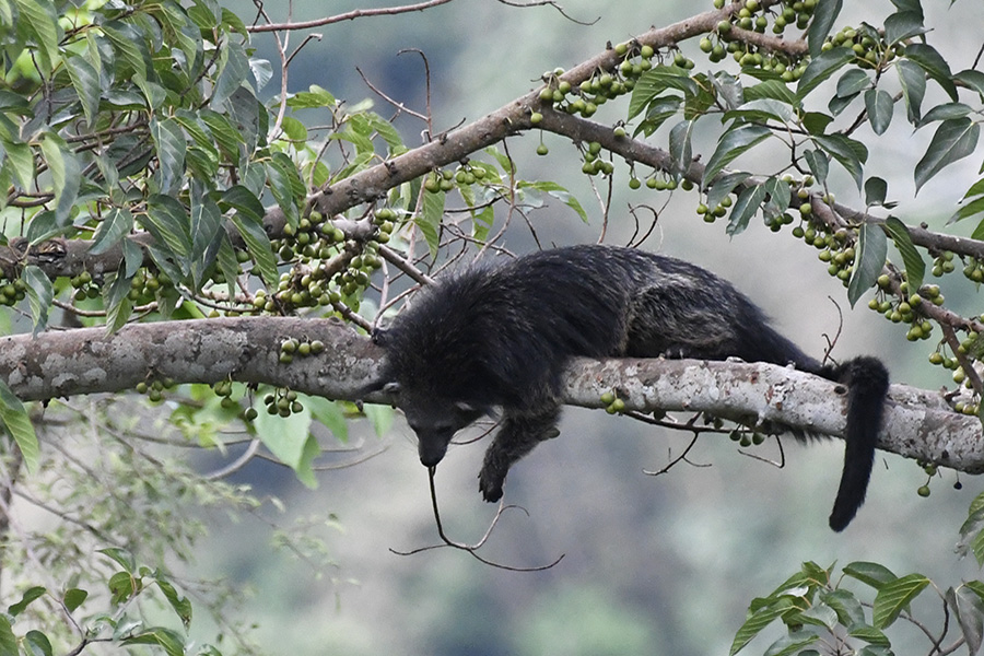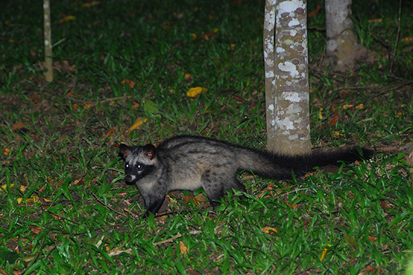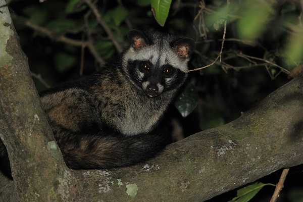 Small-toothed Civets are nocturnal and can be seen in smaller fruit trees, either alone or in small groups.