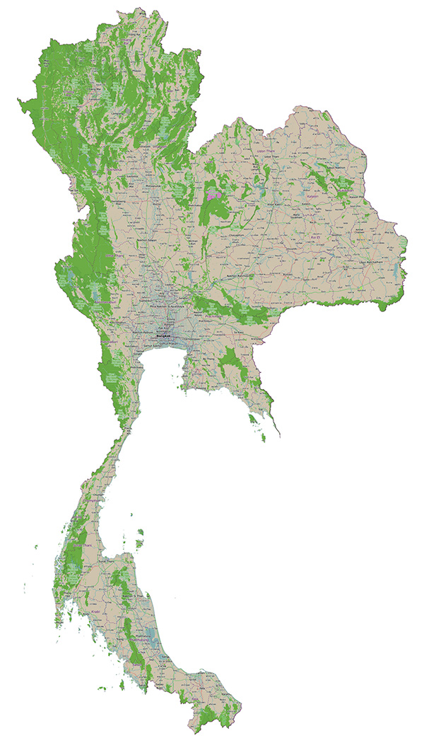 Mostly in small, scattered, isolated pockets in central and western regions. Primary wild locations include Bueng Boraphet in Nakhon Sawan, Kaeng Krachan National Park in Petchaburi, and Khao Ang Rue Nai Wildlife Sanctuary.