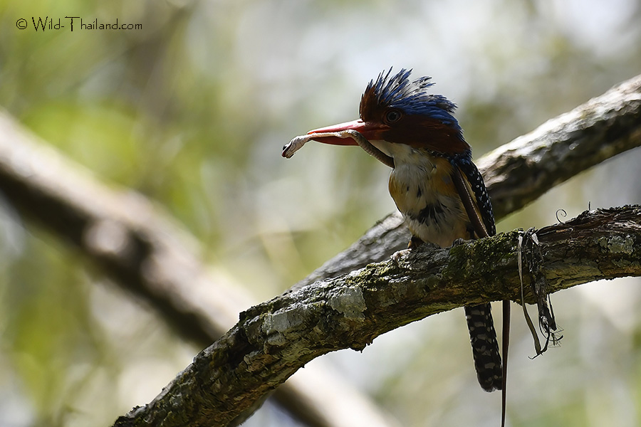 The Banded Kingfisher is a resident bird found throughout most of Thailand, primarily in inland tropical forests from the south, up the western side, and into the northern regions.