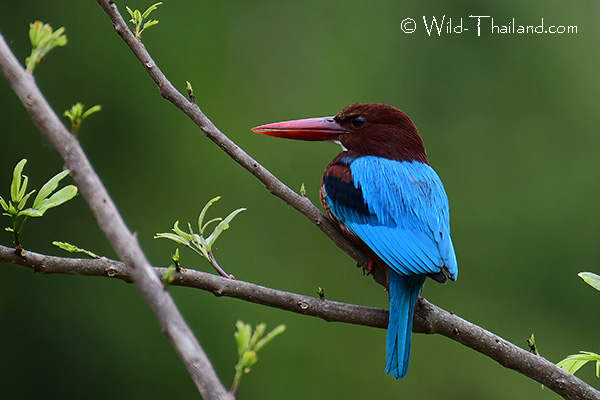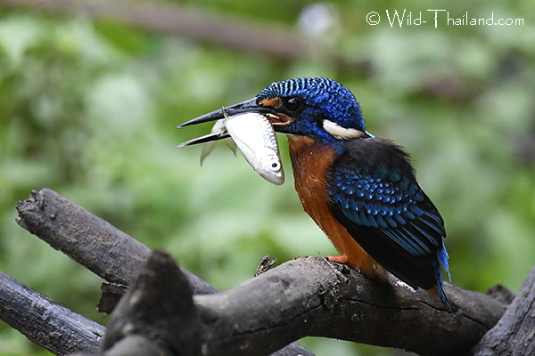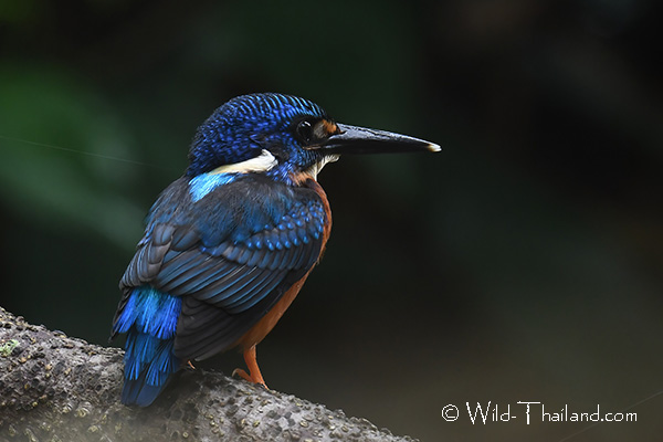 The Blue-eared Kingfisher is found throughout Thailand, particularly in dense evergreen forests, near streams, or in mangrove areas.