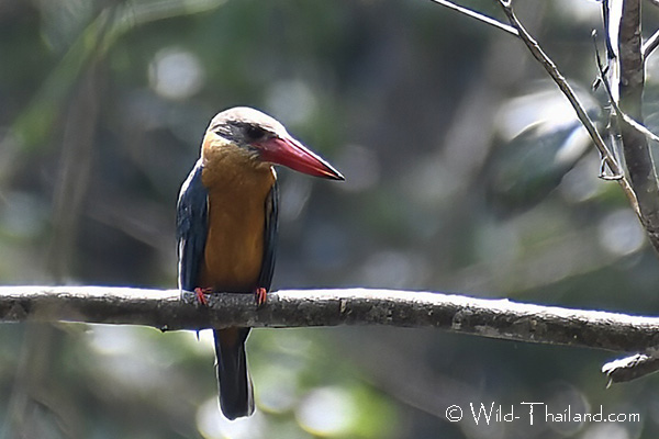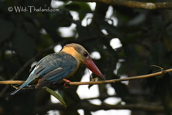 Stork-billed Kingfishers are found throughout Thailand, particularly in lowland forests near water sources like rivers, streams, canals, and large lakes.