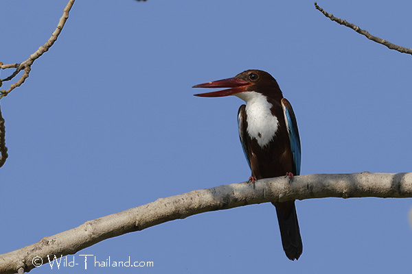 The White-throated Kingfisher is widespread throughout Thailand, they are found in open country, agricultural fields, and urban areas.
