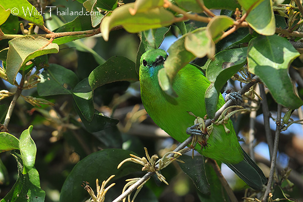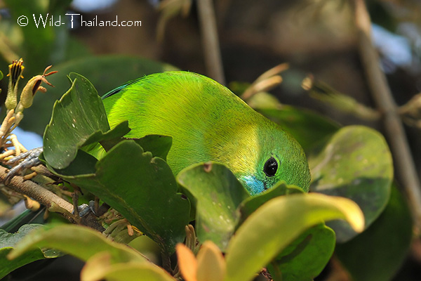 The Lesser Green Leafbird is found in peninsular Thailand. Preferring lowland tropical moist forest, up to 700 meters.