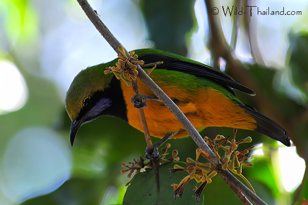 Orange-bellied Leafbirds are territorial and when foraging, will chase other birds away.
