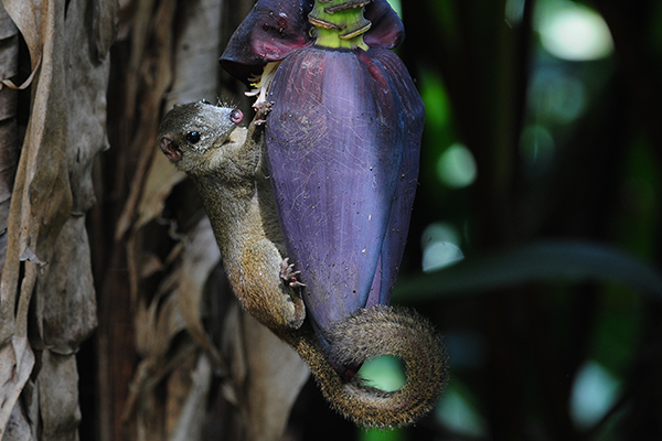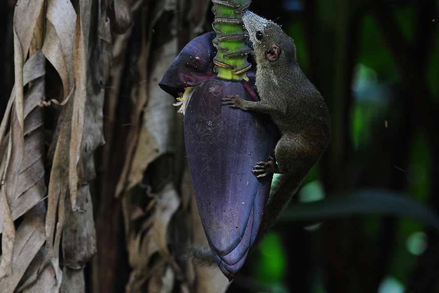 At Phanoen Thung Campsite when banana trees flower, Treeshrews can be seen feeding on the nectar.
