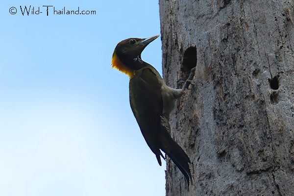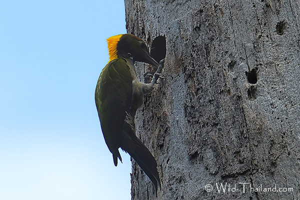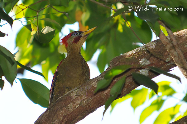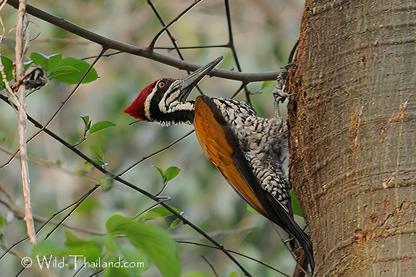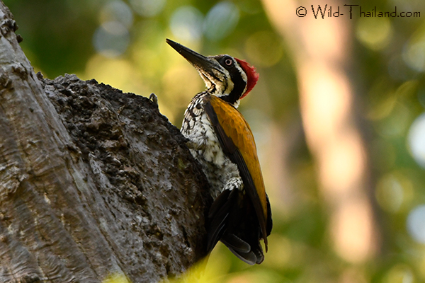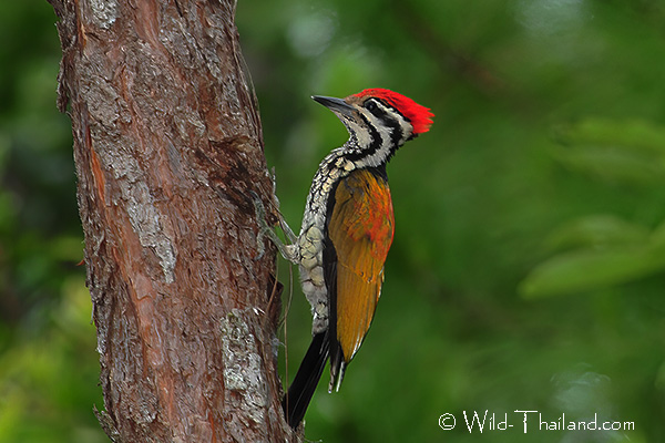 Greater Flameback Woodpeckers are found throughout Thailand, preferring forested habitat with large trees.