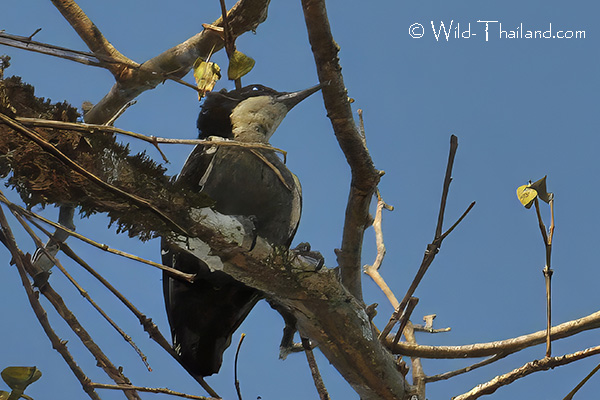 Breeding is from February to May. They excavate a nest hole, often high up in a tree (up to 18 meters), in both living and dead trees.