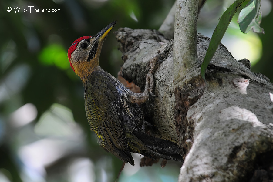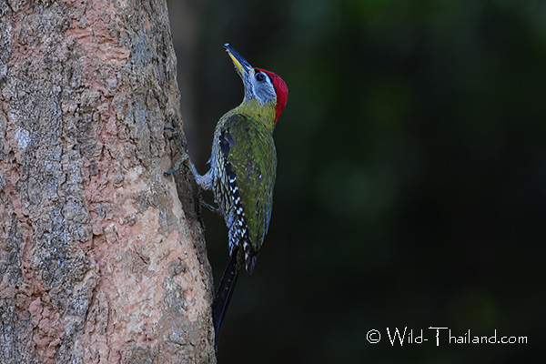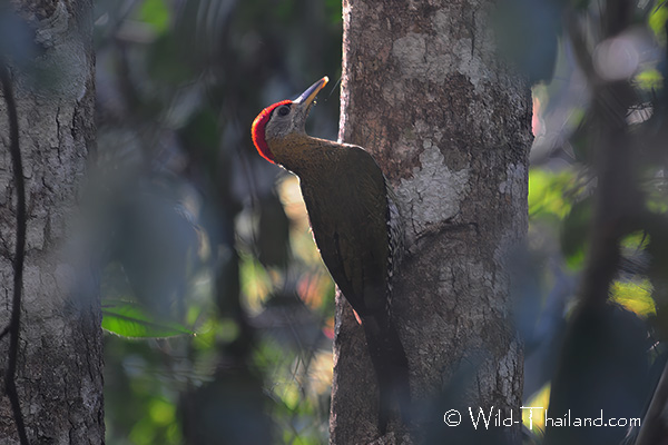 The Lesser Yellownape Woodpecker is found throughout Thailand, in forested lowlands and foothills, inhabiting evergreen forests, moist deciduous forests, woodlands, and bamboo stands.