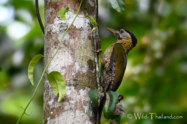 Streak-breasted Woodpeckers are found in southwestern Thailand, preferring  moist lowland forests.